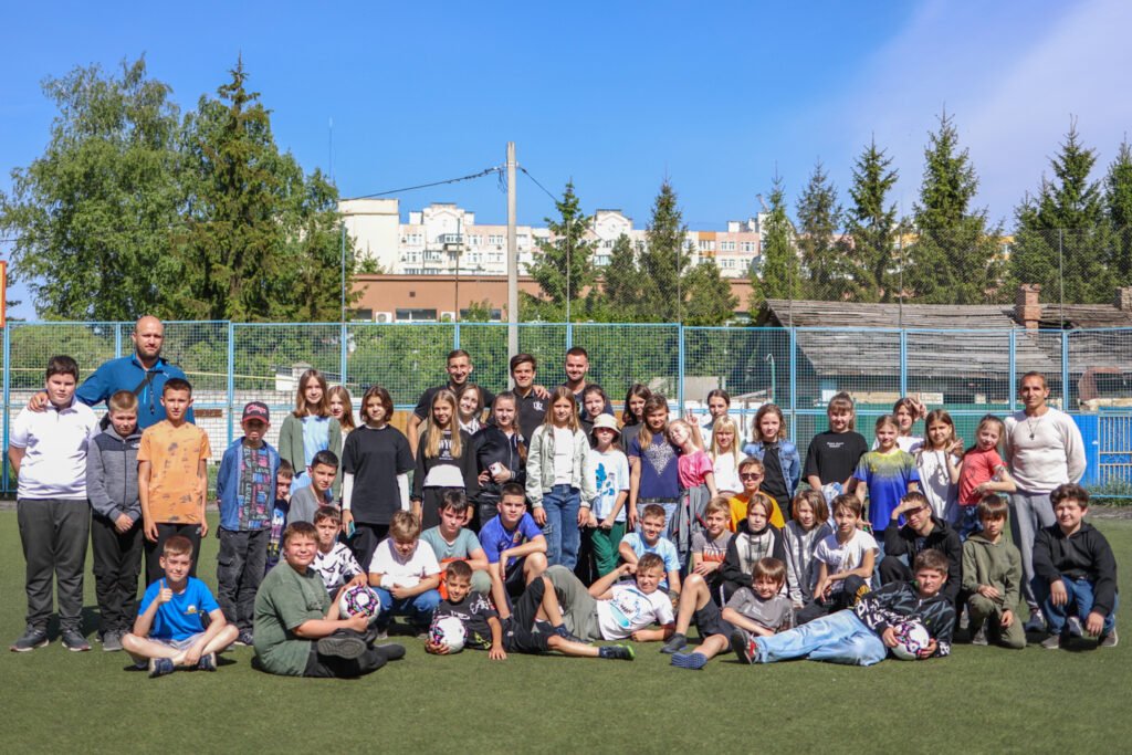 Гравці разом з дітьми встигли розімʼятися й пограти у футбол. Після уроку провели фотосесію та подарували мʼячі для школи