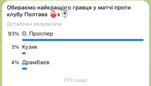 Після кожного матчу ексклюзивно у нашому телеграм-каналі вболівальники голосують за найкращого гравця матчу. На цей раз у цьому голосуванні за звання найкращого гравця змагалися: О. Проспер, Кузик, Драмбаєв.